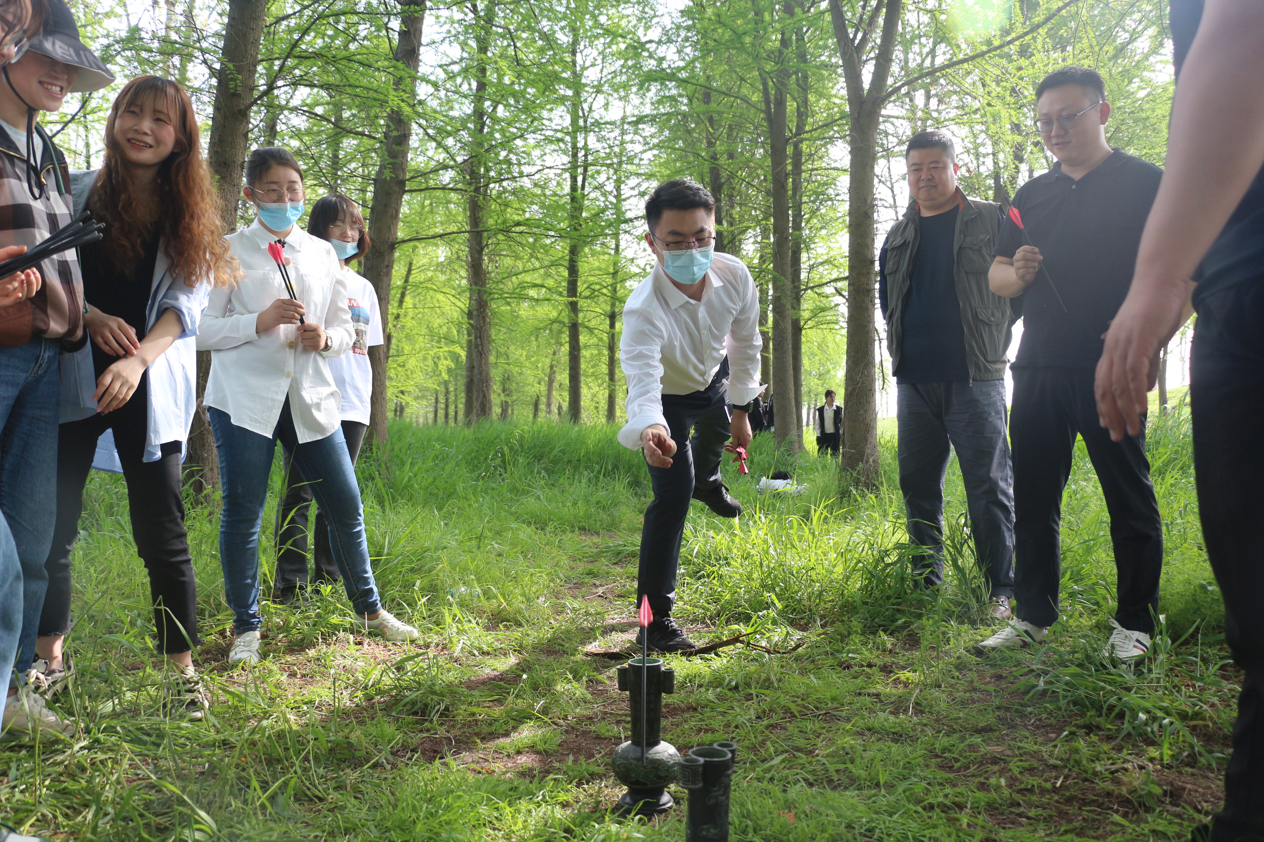 分組投壺,超難度游戲!內控部小姐姐一發擊中,經營部王總乘勝追擊;冰壺大戰,兩人對戰誰離靶心近誰為勝出者,兩組為了取勝紛紛制定獨家戰略~