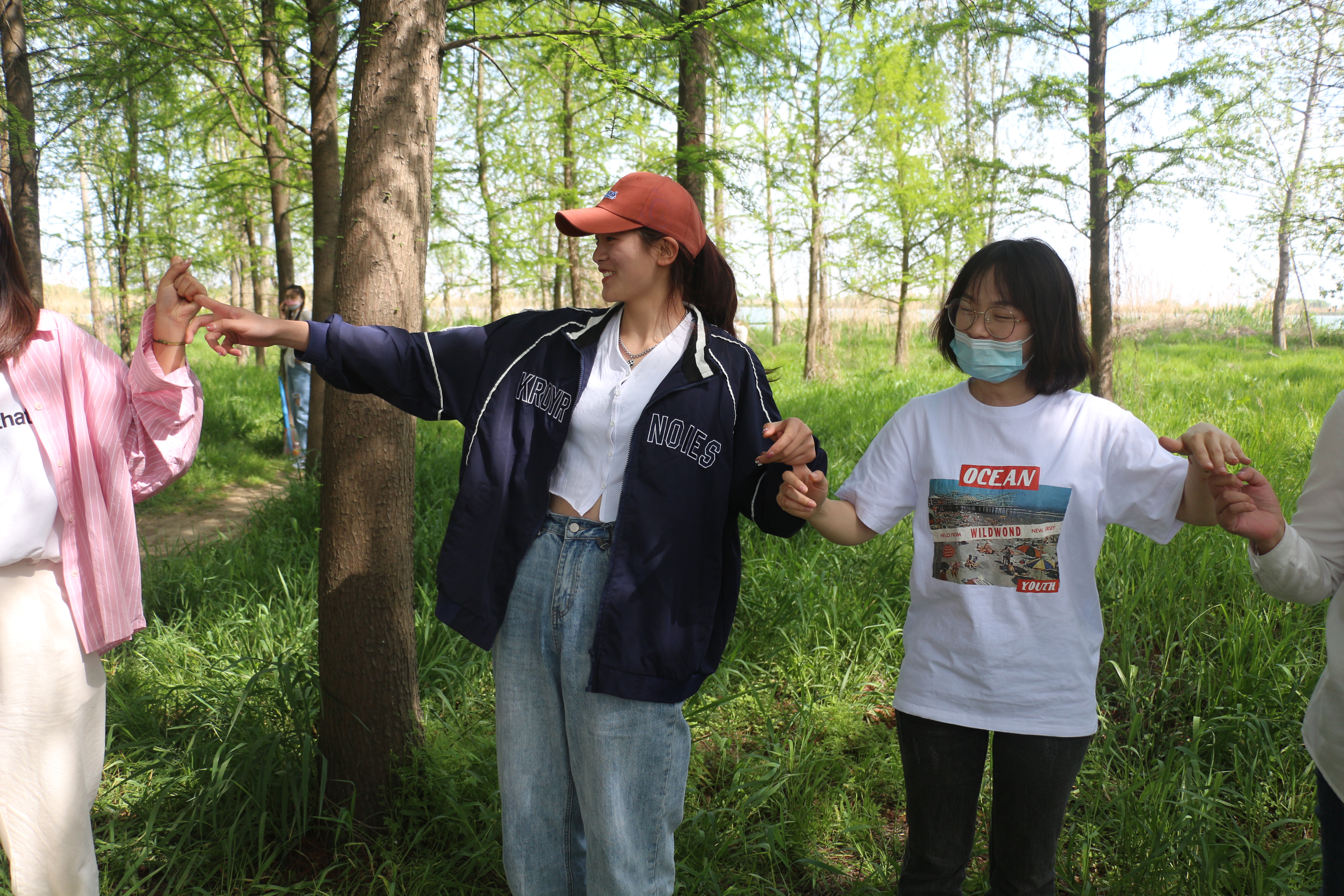分組競技前,鍛煉大家集中注意力的暖場小游戲已令小伙伴們笑開懷!綠樹林蔭下,相機咔嚓咔嚓定格歡樂瞬間~